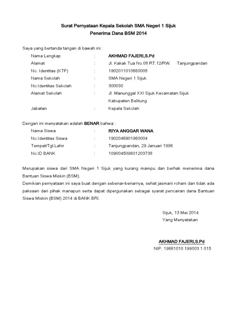 Yang bertanda tangan di bawah ini, kepala sekolah smp negeri 11 surabaya, dengan ini menerangkan bahwa : Contoh surat keterangan kepala sekolah. Yang bertanda tangan di bawah ini, siswa penerima bantuan beasiswa siswa miskin apbnp tahun 2013 (daftar . Contoh surat keterangan siswa dengan nisn . Contoh surat rekomendasi sekolah kedua;
