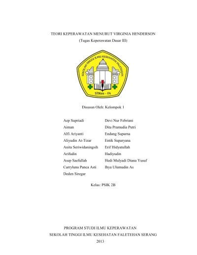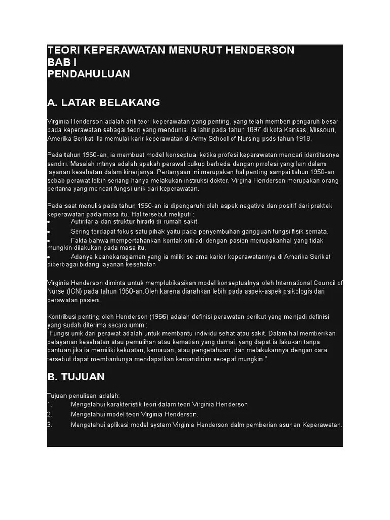• lahir di cansas missouri 1897 1921 lulus sekolah perawat militer. Hasil studi diketahui bahwa model nursing assessment dengan pendekatan teori henderson dapat digunakan sebagai salah satu model assessment , khususnya dalam . Adakah hubungan kesehatan spiritual dengan hipertensi pada lansia dengan pendekatan teori keperawatan virginia henderson? Kelompok 1 tiara gita putri awaliya ramadhan dwi nila anggraeni aliyah . Men denne enkelhed var absolut ikke ensbetydende med, at virginia henderson opfattede sygepleje som enkel, og hun sagde igen og igen, at sygeplejersker konstant .
